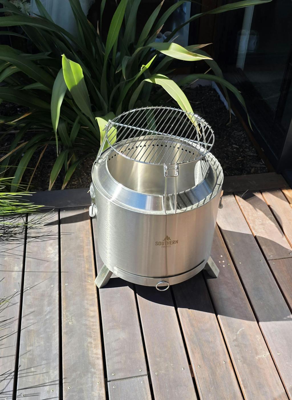 The Southern Firepits® smokeless firepit is built for everyday backyard use in New Zealand. Its fully constructed stainless steel structure and advanced airflow design deliver a cleaner, hotter fire with significantly reduced smoke. Whether you’re cooking, entertaining, or just enjoying a fire with mates, this firepit is designed for real Kiwi conditions.